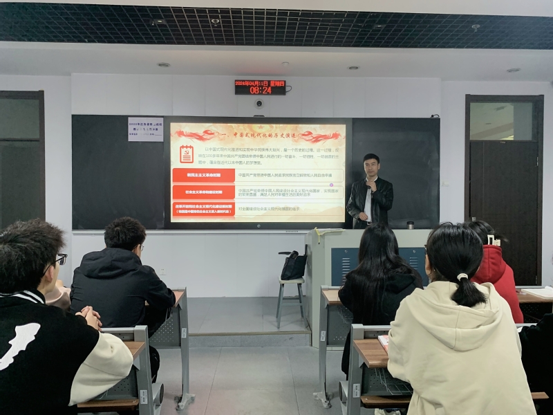 為深入學習貫徹習近平新時代中國特色社會主義思想,引導青年學生將個人命運與國家命運緊密結合,堅定理想信念,爭做時代新人,4月11日,校黨委委員、副校長吳麗云為2023級藥品管理專業的學生講授主題為“正確理解中國式現代化的歷史邏輯與理論邏輯”的思政課。