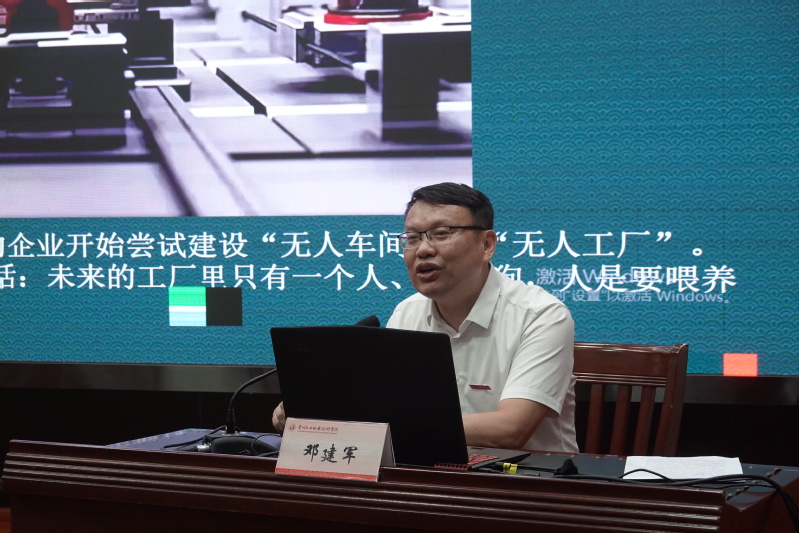 鄧建軍院長結合自身30多年在生產一線參與500多個技術改造項目、攻克約50個重大技術難題,從一名普通的技術工人成長為行業技術領跑者的工作經歷,為同學們介紹了從無人工廠到未來工廠、智能工廠概念和發展歷程、智能制造的關鍵應用技術,以及智能車間實施等情況。他對同學們提出了四點希望和建議:一是希望能堅定信心,筑夢未來工匠,成為大有作為的時代青年;二是希望能保持恒心,培養奮斗精神,做堅持知行合一的向上青年;三是希望能勇于創新,練就過硬本領,做矢志全面發展的有為青年;四是希望能具有國際化視野,做新質生產力的推動者,為中國制造趕超世界先進水平不斷努力。