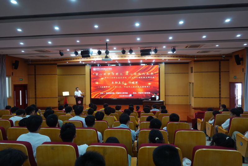 9月20日,鄧建軍工匠學院名譽院長、大國工匠、全國勞模、全國五一勞動獎章獲得者、江蘇最美工匠鄧建軍受邀來校,以《勇擔時代使命 譜寫青春華章》為題給鄧建軍工匠學院全體學生上了生動的開學第一課。