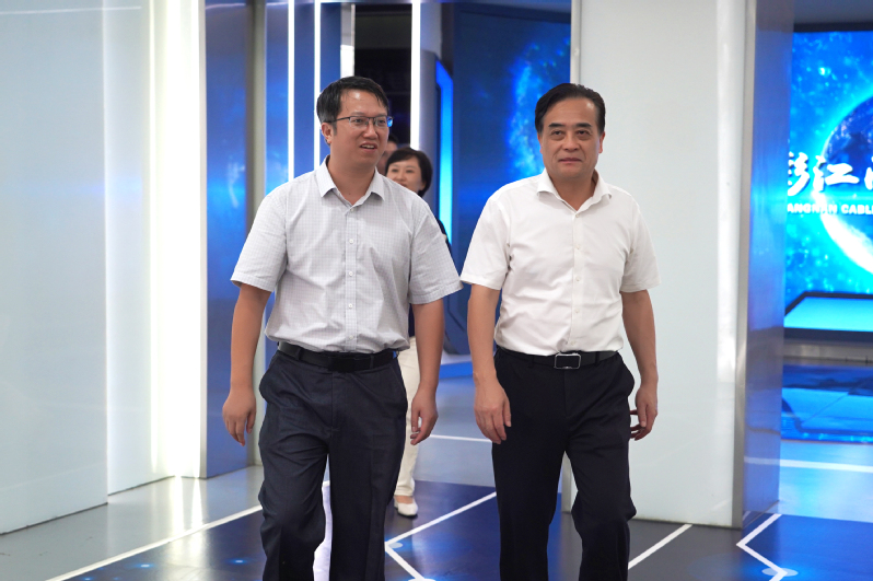 無錫江南電纜有限公司行政副總經理陳曉軍對楊勁松一行的到來表示熱烈歡迎,并帶領大家觀看企業宣傳片,并介紹企業背景、發展歷程、企業愿景、企業產品等內容。
