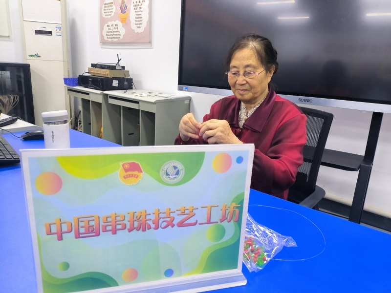 “一根線,一些彩珠,最后串聯成多種多樣的作品,動腦又動手,手眼都能協調”,當年的模具系黨總支書記張燏對這些創意作品趣味盎然,在她的支持下,“中國串珠技藝工坊”學生社團應運而生,時年61歲的朱文霞成為了社團指導老師和創辦者之一。