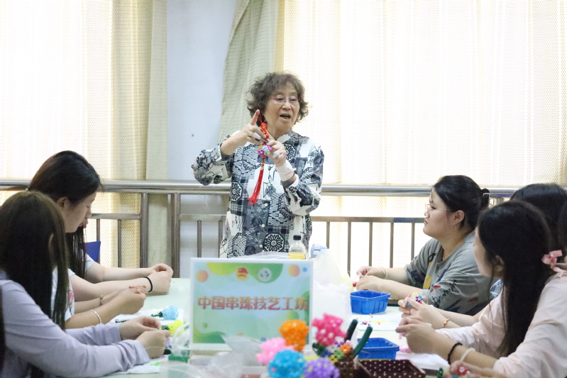 “其實,應該是我們感激朱老師才是。”作為現任串珠社指導老師之一的輔導員高婉君說,“朱文霞老師是一位堅毅赤誠的教育工作者,對待學生耐心細致,一絲不茍,雖然已經退休多年,身體多處受疾病困擾,但每周三依然堅持來校教授學生串珠,從未間斷。她深沉的教育熱情與不屈不撓的精神風貌深深激勵并感染著我。”