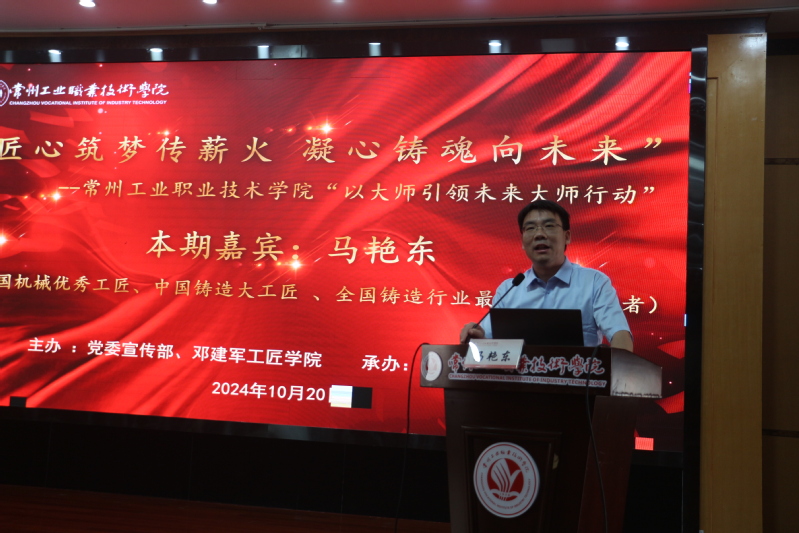 10月20日,機械與交通學院特邀中國鑄造大工匠、最美科技工作者、龍城工匠、江蘇恒立液壓股份有限公司副總經理馬艷東校友與2024級學生分享技能成才事跡。講座由機械與交通學院黨總支書記陳曉敏主持。