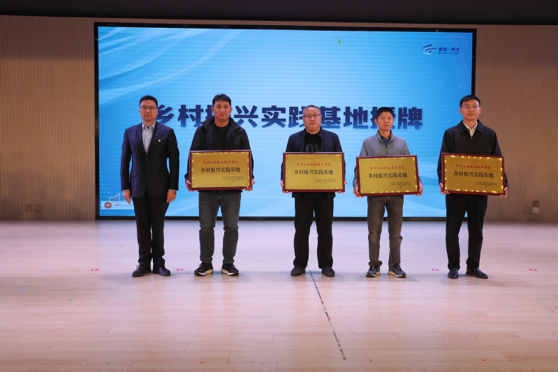 檀祝平為常州新能源產教聯合體同心教育實踐基地和江蘇母嬰產業學院禮嘉分院揭牌;數字商務學院黨總支書記馬軍為鄉村振興實踐基地授牌。