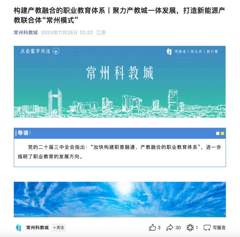 常州科教城:構建產教融合的職業教育體系丨聚力產教城一體發展,打造新能源產教聯合體“常州模式”