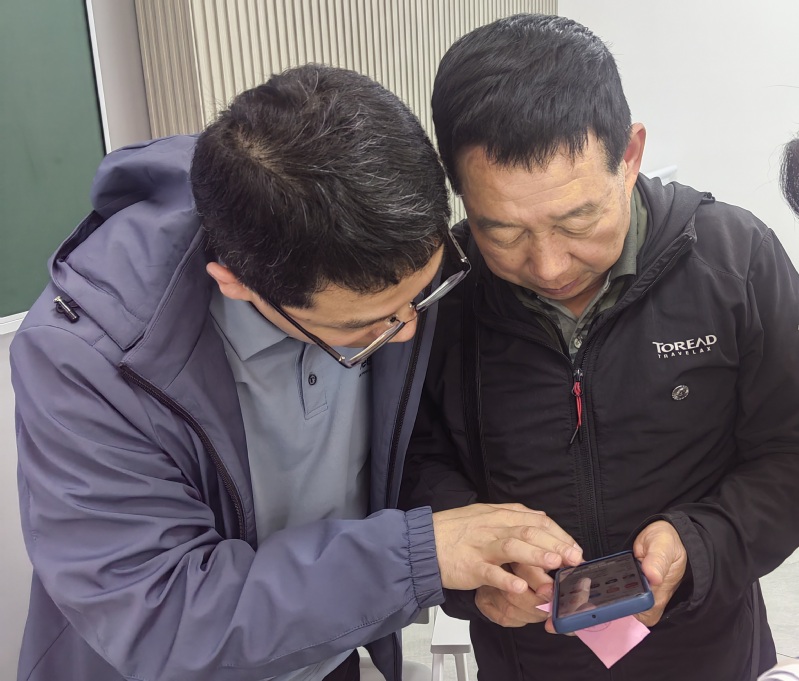 武棟博士(左)現(xiàn)場指導老教師進行AI操作