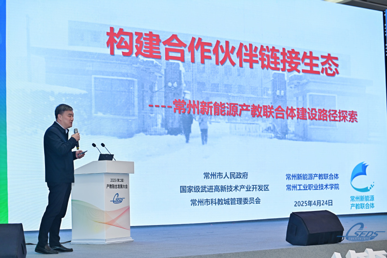 4月24日,2025(第二屆)產(chǎn)教融合發(fā)展大會在四川瀘州舉行。大會以“構(gòu)建產(chǎn)教融合新格局,賦能新質(zhì)生產(chǎn)力發(fā)展”為主題,來自全國多地政府部門、教育行政部門,普通高校、職業(yè)院校、行業(yè)企業(yè)以及中央媒體的400余位嘉賓與會。作為2024年教育部產(chǎn)教融合、校企合作典型案例學(xué)校代表,我校黨委書記席海濤受邀參加并作常州新能源產(chǎn)教聯(lián)合體建設(shè)典型案例主題報(bào)告。