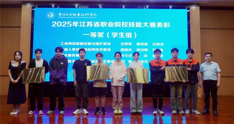 會議表彰了2025年省賽優秀師生團隊。姚慶文為省賽教師組一等獎團隊頒發獲獎證書,檀祝平為省賽學生組一等獎團隊頒發獲獎證書。
