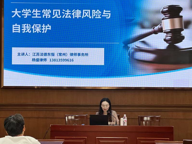 5月28日,江蘇法德東恒(常州)律師事務(wù)所楊盛律師走進(jìn)我校“一站式”學(xué)生社區(qū),為學(xué)生帶來“大學(xué)生常見法律風(fēng)險(xiǎn)與自我保護(hù)”的法治教育講座。