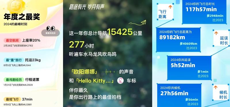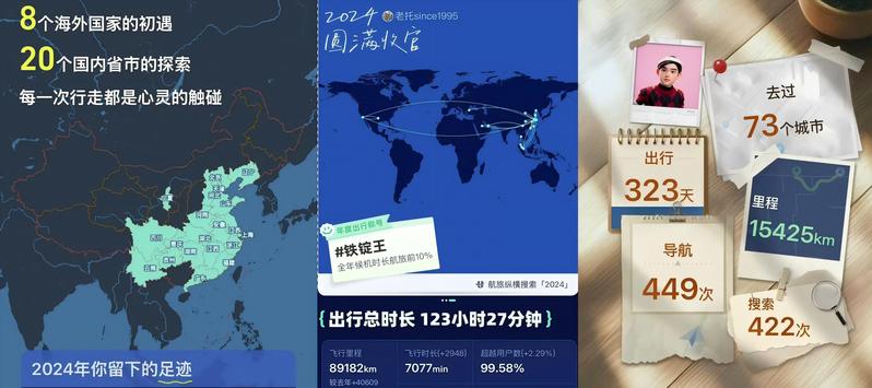 高德地圖為于建平的2024年做了一份詳細的總結:在這一年里,他出行323天,如同一位不知疲倦的行者,穿梭于世界各地;去過73個城市,領略了不同地域的風土人情;導航449次,搜索422次,在探索未知的道路上不斷前行;歷程15425公里,飛行里程89182公里,飛行時長117小時57分鐘,出行總時長123小時27分鐘,候機時長27小時56分鐘。他的這份忙碌與堅持,被高德地圖封為“鐵錠王”。這一稱號,亦是他拼搏人生的最好見證。