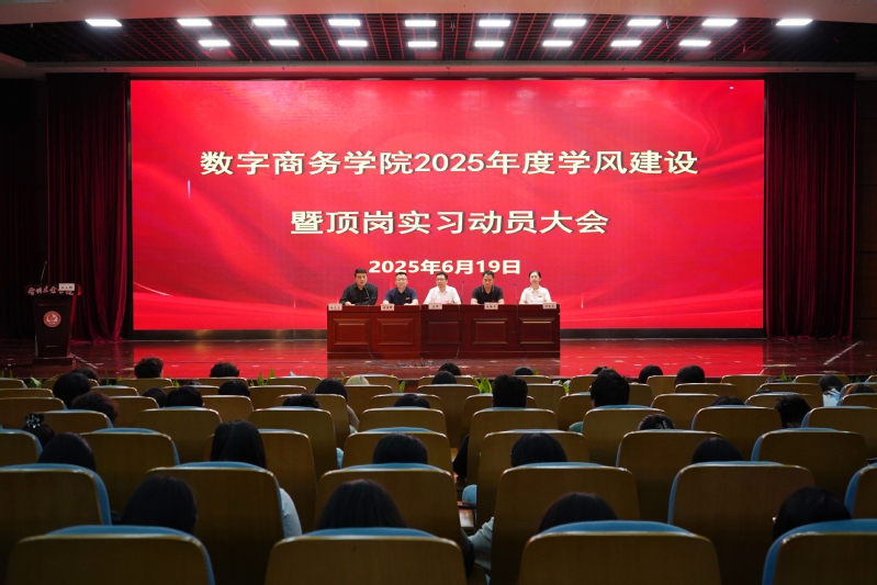 6月19日,數(shù)字商務(wù)學(xué)院召開2025年度頂崗實(shí)習(xí)動員大會。學(xué)院黨政領(lǐng)導(dǎo)班子、全體輔導(dǎo)員以及23、24級學(xué)生參加了活動。