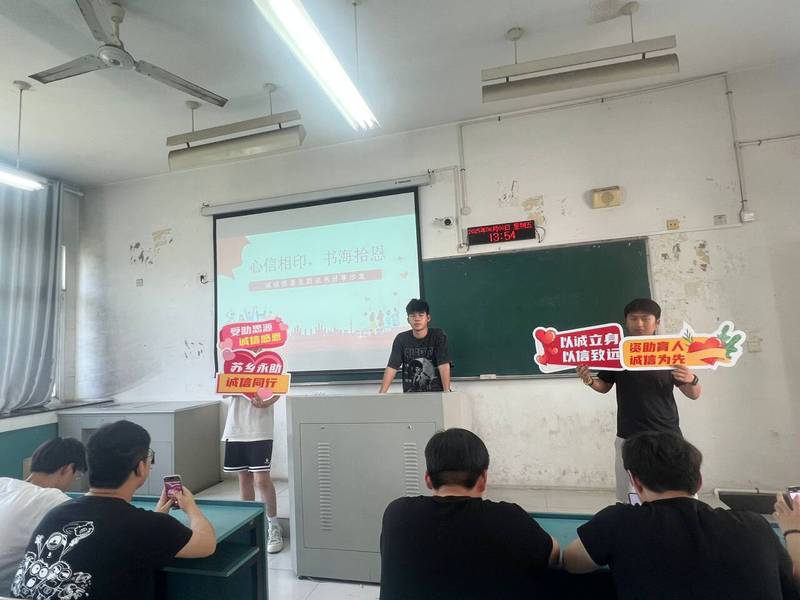 學院打造“心信相印·書海拾恩”讀書沙龍,組織學生圍繞《平凡的世界》《愛的教育》等經典著作,結合成長經歷探討誠信與感恩的價值內涵。“閱讀讓我明白,誠信既是立身之本,更是社會責任。”2024級學生代表王晨在分享中如是說。同時,學院創新開展“誠信微故事”分享活動,遴選學生身邊的真實誠信事跡,通過簡樸務實的分享會強化朋輩示范,激發情感共鳴,使誠信理念深入人心。