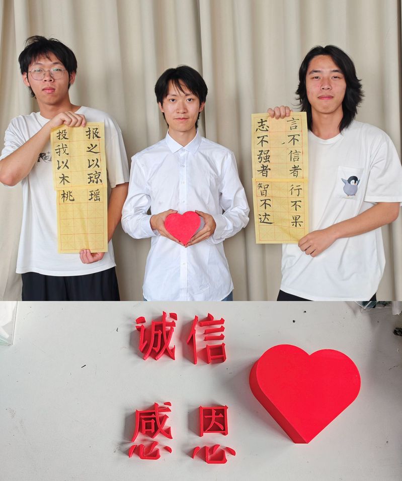 學院將情感表達融入動手實踐,舉辦誠信感恩主題手辦模型創作活動。學生以3D打印技術結合書法藝術,制作出承載感恩與誠信信念的創意作品。“這個模型寄托著我對父母、師長和社會的感謝,也時刻提醒我堅守誠信準則。”2023級李三鑫同學展示作品時動情說道。活動通過具象化創作,使抽象的道德品質轉化為可觸可感的行動表達。
