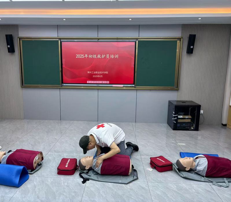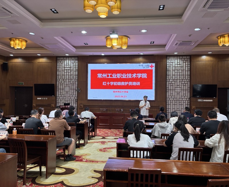 6月23日,我校開展2025年初級救護員理論與實操培訓。本次培訓邀請常州市紅十字會馬正瀚擔任主講人,市紅十字會王彩仙、李波、錢建明擔任助教。部分二級學院、團委、教務處等部門教職工共55人參加本次培訓。