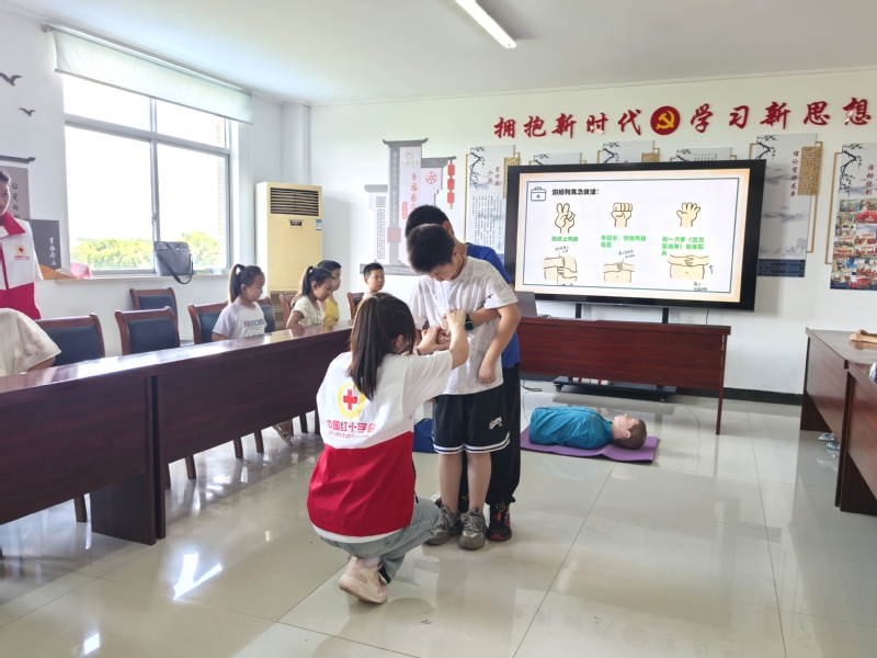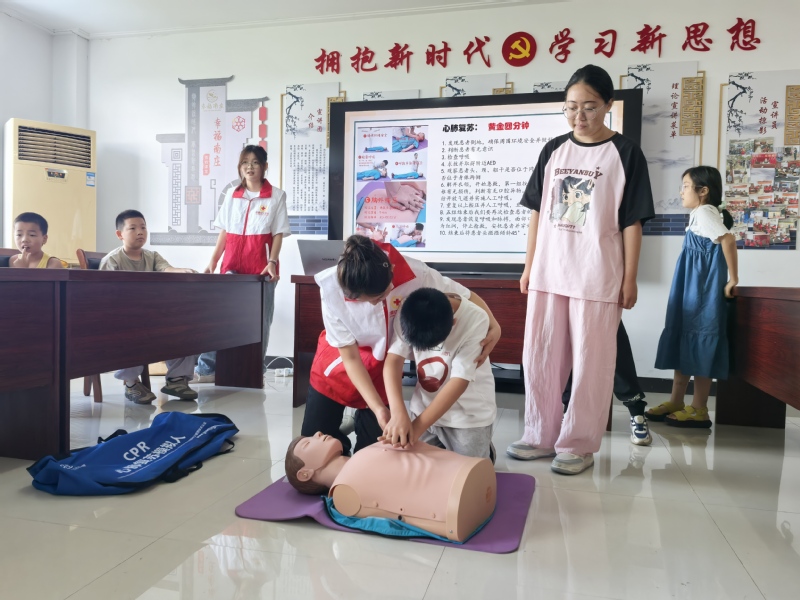 實踐團在課程設計中注重勞動技能與生命教育相結合。“小小救護員”急救培訓中,志愿者詳細講解心肺復蘇、海姆立克法以及常見的創傷處理方法。孩子們神情專注地利用假人模型開展實操訓練,在志愿者手把手的指導下,逐步掌握了急救動作的要領。此外,志愿者還帶領孩子們參與課后教室衛生打掃以及村內環境義務清潔等公益勞動,通過這些親身勞動體驗,在孩子心中播下了奉獻的種子,也讓大家深刻體會到勞動的艱辛與價值。