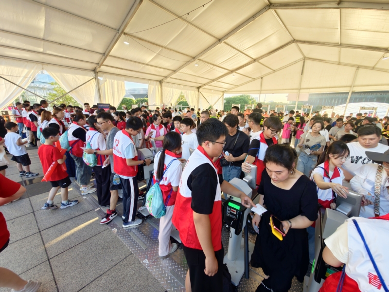 在這場萬眾矚目的賽事背后,有我校一群默默奉獻的青年志愿者們的身影。他們放棄暑假休息時間,冒著高溫化身“人形閘機”,以專業服務保障4萬余名觀眾有序入場,用青春汗水詮釋了學校青年的擔當。