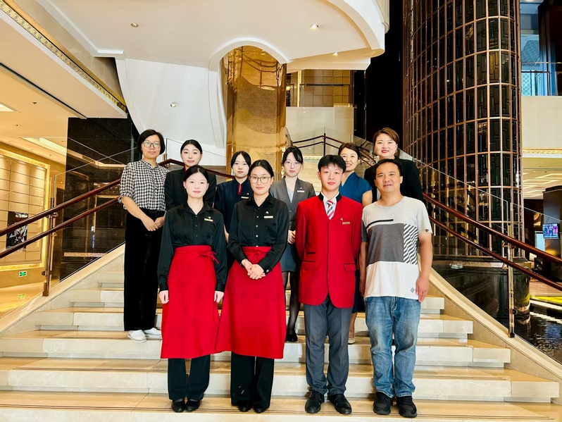 “工作強(qiáng)度還能適應(yīng)嗎?生活上有沒有需要學(xué)院出面協(xié)調(diào)的問題?”“有沒有做好防暑措施?”……在各實(shí)習(xí)單位的工作現(xiàn)場(chǎng),走訪老師與在崗實(shí)習(xí)生逐一交流,仔細(xì)詢問他們的工作內(nèi)容、適應(yīng)情況及遇到的困難。在九州喜來(lái)登酒店大堂吧,2023級(jí)旅游管理專業(yè)學(xué)生陳嘉欣分享道:“從剛開始的緊張到現(xiàn)在能熟練處理客訴,多虧了企業(yè)師傅的指導(dǎo)和學(xué)院老師的遠(yuǎn)程關(guān)心。這次老師們親自來(lái),還幫我們解答了職業(yè)規(guī)劃的困惑,感覺更有方向了。”