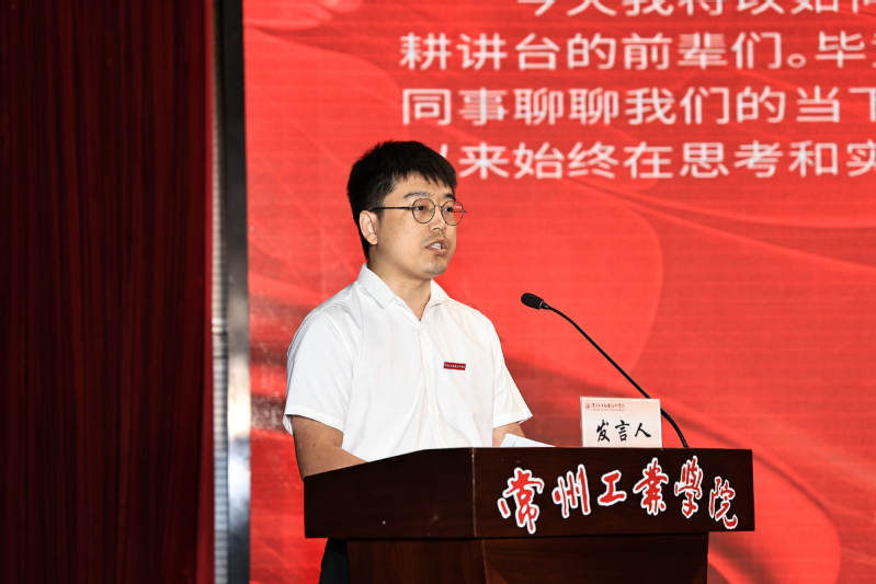 材料工程學(xué)院教師趙東作為新進(jìn)教師代表發(fā)言。他表示,將以前輩為榜樣,融入學(xué)校發(fā)展,堅(jiān)守為黨育人、為國(guó)育才初心,早日成為一名優(yōu)秀的高職教師,并祝愿學(xué)校薪火相傳、再創(chuàng)輝煌。