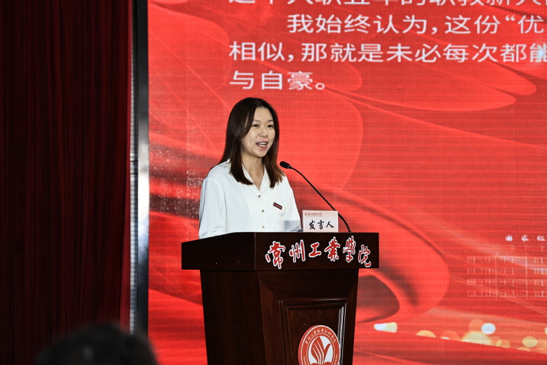 數(shù)字商務(wù)學(xué)院教師吳丹作為優(yōu)秀教師代表發(fā)言。她表示,職教人需順應(yīng)行業(yè)智能化、數(shù)字化趨勢(shì),探索創(chuàng)新教學(xué)方法。她希望為學(xué)校培養(yǎng)更多高技能人才,祝愿學(xué)校在高質(zhì)量發(fā)展的道路上行穩(wěn)致遠(yuǎn)、再創(chuàng)佳績(jī)。