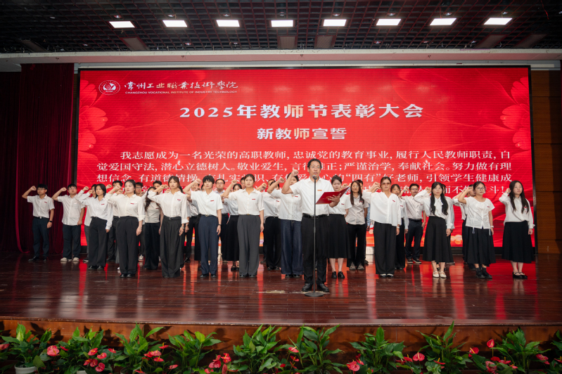 會(huì)上舉行新教師宣誓儀式,蔣正炎帶領(lǐng)46位新教師宣誓。