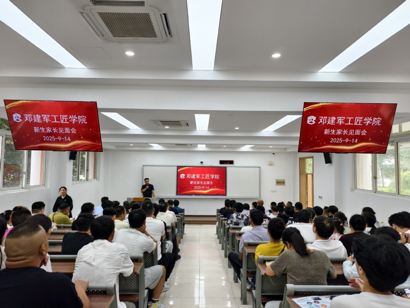 新生入學報到日,鄧建軍工匠學院院長袁飛主持新生家長見面會,以“匠心”為鑰,開啟新生對工匠道路的認知之門。袁飛緊扣制造業高質量發展趨勢,結合學院辦學優勢,從課程體系構建、實訓資源配置、校企合作模式、就業發展前景四個維度展開深入講解。他表示,希望2025級新生們能傳承學院名譽院長、大國工匠鄧建軍“愛崗敬業、自強不息”的精神,扎根新能源智能制造核心賽道,以鉆研不輟的韌勁、勇于創新的闖勁練真技、強本領,努力成長為懂技術、善創新、有擔當的新時代工匠。