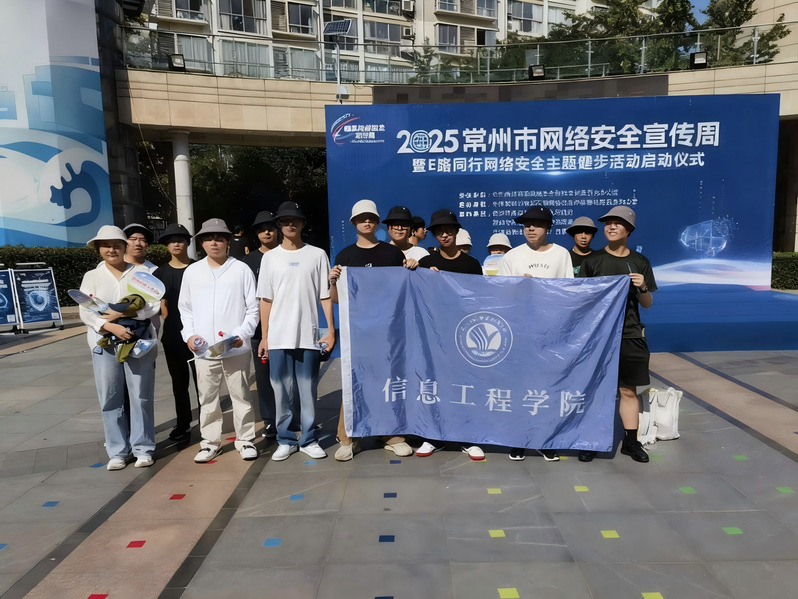 9月16日,2025年常州市武進區網絡安全宣傳周暨“E路同行”網絡安全主題健步活動啟動儀式在湖塘鎮舉行。我校信息工程學院學生積極響應,組織了一支15人的隊伍參與此次健步活動。
