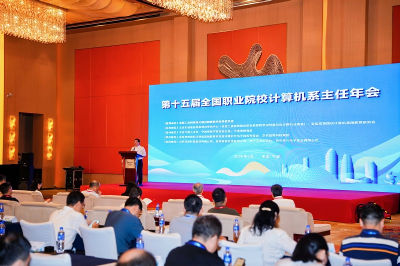 9月21日,第十五屆全國職業(yè)院校計(jì)算機(jī)系主任年會(huì)在浙江寧波召開。本屆年會(huì)由工業(yè)和信息化部教育與考試中心、全國高等院校計(jì)算機(jī)基礎(chǔ)教育研究會(huì)聯(lián)合主辦,以“數(shù)智融合·產(chǎn)教協(xié)同”為主題,匯聚全國職業(yè)教育領(lǐng)域的專家學(xué)者、院校代表及行業(yè)企業(yè)精英,共話人工智能時(shí)代下的職業(yè)教育改革與高質(zhì)量發(fā)展。我校副校長(zhǎng)檀祝平應(yīng)邀出席,并在“工信領(lǐng)域產(chǎn)教融合”平行論壇上作《兩翼齊飛,打造產(chǎn)教融合新形態(tài)》專題匯報(bào),系統(tǒng)展示了學(xué)校在國家級(jí)行業(yè)產(chǎn)教融合共同體建設(shè)中的創(chuàng)新實(shí)踐與顯著成效。