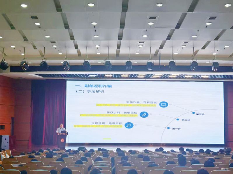 施清杰和徐于的“高校安全課堂”講座結(jié)合真實(shí)案例,深入淺出地拆解了詐騙分子的話術(shù)設(shè)計與作案流程,切實(shí)幫助學(xué)生掌握識詐、防詐、反詐的實(shí)用技能。