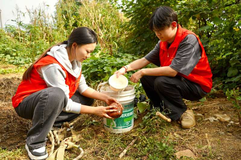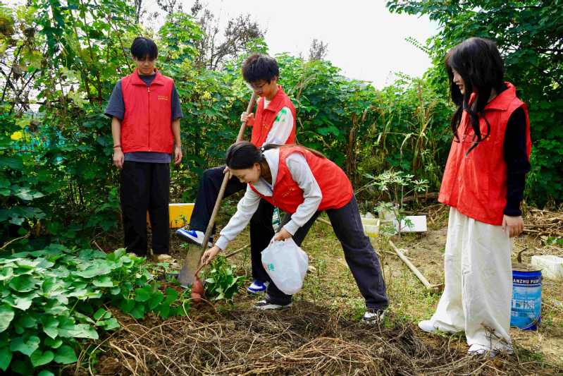 同學們走進農田,在農民伯伯和奶奶的指導下,親手體驗挖山芋、采摘黃瓜與辣椒等農事勞作。從理論到實踐,從認知到體驗,同學們在躬身耕作中真切體會到“一粥一飯,當思來之不易”的深刻含義。