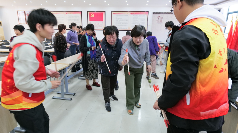 投壺套圈,益智歡樂多。益智活動現場,老人們熱情高漲,手持箭矢或套圈,全神貫注地瞄準目標。有的精準地落入壺中,引得周圍一片歡呼,有的則遺憾地偏出,但大家并不氣餒,繼續嘗試。現場歡聲笑語不斷,氣氛熱烈而融洽。與此同時,益智拼圖區域也吸引了不少老人。老人們圍坐在一起,耐心地拼湊著手中的拼圖。他們互相交流、幫助,共同解決難題。當一幅完整的拼圖呈現在眼前時,老人們臉上露出了滿足的笑容。這個活動不僅鍛煉了老人們的大腦,還增進了彼此之間的感情。