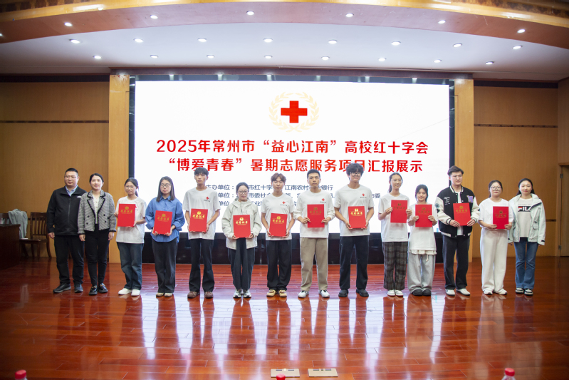 11月6日,2025年常州市“益心江南”高校紅十字會“博愛青春”暑期志愿服務(wù)項目總結(jié)展示活動在我校舉行。常州市紅十字會黨組書記、常務(wù)副會長戴亞東,我校黨委副書記吳麗云,江南農(nóng)村商業(yè)銀行工會副主席殷錫峰,常州市紅十字會黨組成員、副會長鄭躍進,市委社工部、市教育局、團市委、市紅會等相關(guān)處室負責(zé)人,以及各高校紅十字會項目負責(zé)老師、大學(xué)生志愿者、學(xué)生代表共200余人參加活動。