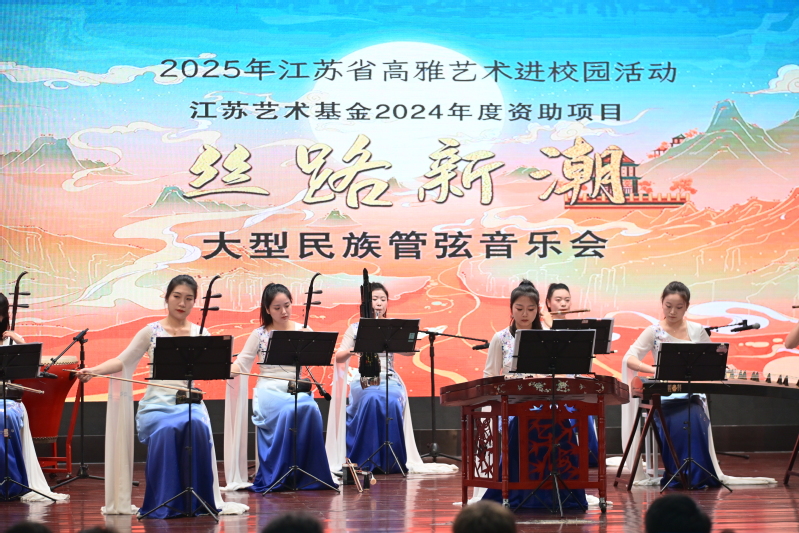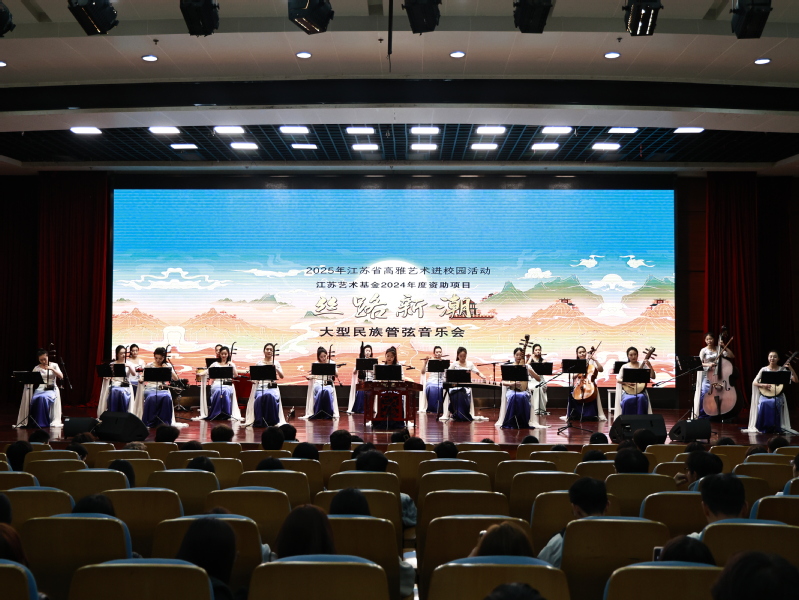 11月12日,江蘇省高雅藝術(shù)進(jìn)校園項(xiàng)目——江蘇女子民族樂(lè)團(tuán)“絲路新潮”大型民族管弦音樂(lè)會(huì)走進(jìn)我校。學(xué)校特別組織了“一帶一路”合作國(guó)家的海外學(xué)生與本校師生共同觀演,現(xiàn)場(chǎng)逾千名師生沉浸于民族音樂(lè)的魅力之中,共同感受絲路文化的時(shí)代新聲。