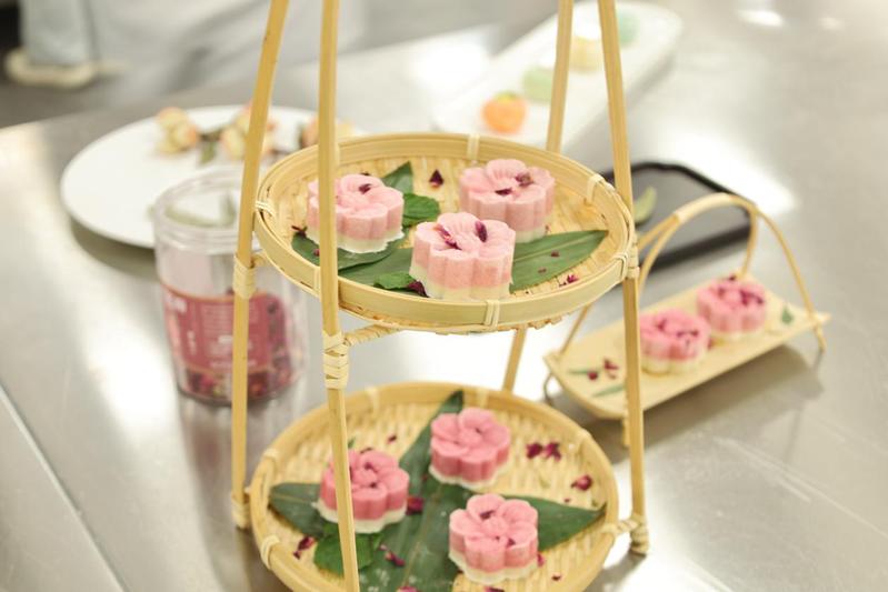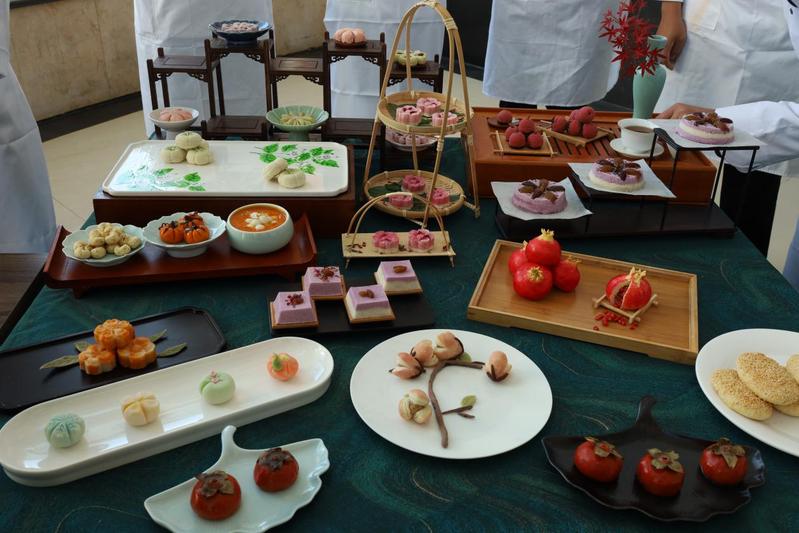 面點展示區(qū)則如同一場融合了節(jié)氣文化與養(yǎng)生智慧的藝術(shù)展。從皮重、餡心都嚴格標準的“冠頂餃”“秋葉餃”等傳統(tǒng)花式蒸餃,到造型逼真、寓意吉祥的“白菜餃”,學生們精湛的捏塑技藝令人贊嘆。更值得一提的是創(chuàng)意養(yǎng)生茶點系列:“茯苓玫瑰糕”巧妙運用藥食同源理念,“桂花酒釀餅”浸潤著秋日韻味,“柿子山藥糕”則集綿密與清甜于一體。這些作品以色、香、味、形為載體,讓節(jié)氣養(yǎng)生理念在舌尖上優(yōu)雅綻放,全面展現(xiàn)了高職學子在面點工藝與營養(yǎng)學結(jié)合上的創(chuàng)新與實踐能力。經(jīng)過激烈角逐與嚴格評審,大賽最終評選出特等獎、一等獎、二等獎及三等獎若干。