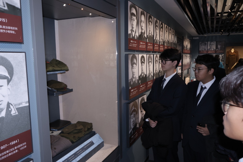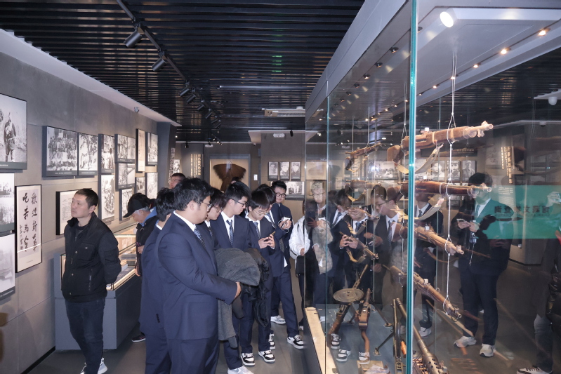 在紀(jì)念館講解員的引導(dǎo)下,師生們依次參觀了指揮部司令部舊址、史料展覽館、碑廊等。一件件飽經(jīng)戰(zhàn)火的歷史文物,一幅幅珍貴的歷史圖片,一段段翔實(shí)的文字資料,生動再現(xiàn)了以粟裕、譚震林等為代表的新四軍將士在江南地區(qū)艱苦卓絕的抗戰(zhàn)歷程和“威震江南,功在民族”的鐵軍風(fēng)采。通過沉浸式參觀學(xué)習(xí),大家深刻體會到新四軍將士在極端困難條件下,緊緊依靠人民群眾,不畏強(qiáng)敵、浴血奮戰(zhàn)的革命英雄主義精神和堅定的共產(chǎn)主義信仰。