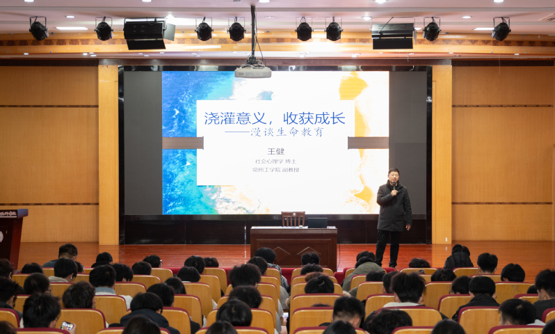 學院面向2025級全體學生,舉辦“澆灌意義,收獲成長——漫談生命教育”專題講座,特邀常州工學院王健博士主講。王健以生動案例切入,從生命的存在意義與成長價值雙維度展開,結合學生常見心理困惑解析核心內涵,分享實用心理調適方法并開展互動問答。現場學生專注聆聽,并表示,講座讓自己深刻體會到了生活的重量,學會了更溫暖地陪伴同學。