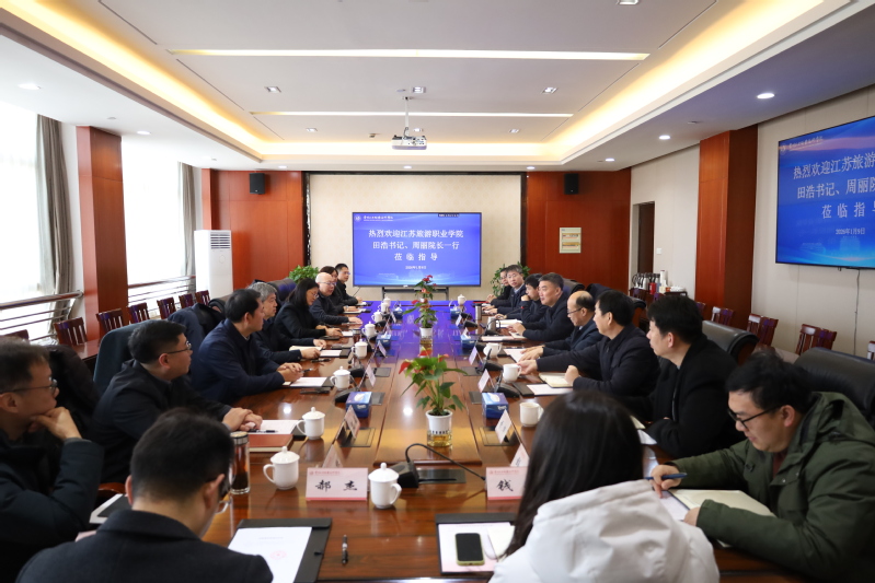 1月9日,江蘇旅游職業(yè)學(xué)院黨委書(shū)記田浩、校長(zhǎng)周麗率隊(duì)來(lái)我校考察。我校黨委書(shū)記席海濤、校長(zhǎng)王志華、黨委副書(shū)記吳麗云、副校長(zhǎng)姚慶文、紀(jì)委書(shū)記朱曉華熱情接待來(lái)賓,雙方就黨建工作、專業(yè)建設(shè)、人才培養(yǎng)等領(lǐng)域的經(jīng)驗(yàn)做法與合作路徑展開(kāi)深入交流。