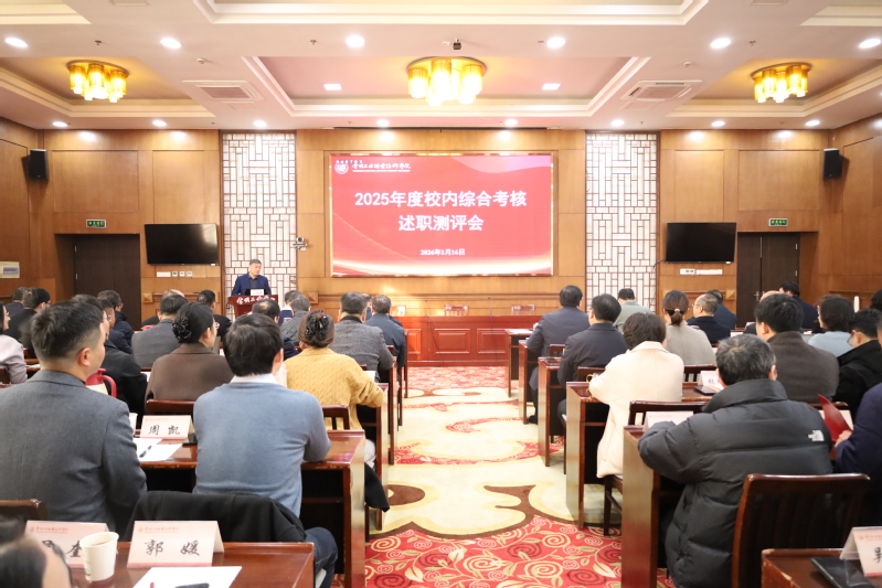 1月16日,我校召開2025年度校內綜合考核現場述職匯報會。全體校領導、全體中層干部參加會議,會議由黨委書記席海濤主持。