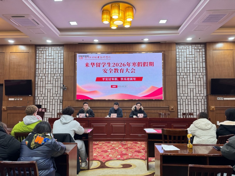 1月20日,我校召開來華留學生2026年寒假安全教育大會。國際與港澳臺事務處、海外教育學院(合署)處長張書貴出席會議并講話,全體輔導員、班主任及來華留學生參加了會議。
