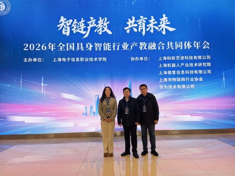1月22-24日,由上海電子信息職業技術學院主辦的2026年全國具身智能行業產教融合共同體年會暨職業教育具身智能相關專業建設與人才培養研討會在滬召開,我校當選全國具身智能行業產教融合共同體副理事長單位。副校長檀祝平、信息工程學院院長李斐、智能控制學院副院長蔣金偉代表學校參會。