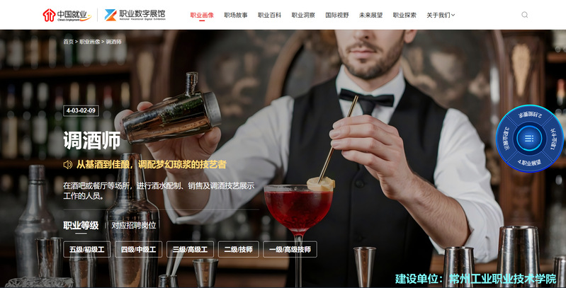 據(jù)悉,人力資源社會保障部中國就業(yè)培訓技術指導中心啟動國家級職業(yè)數(shù)字展館建設項目,旨在依托《中華人民共和國職業(yè)分類大典(2022年版)》,以數(shù)字化手段全景式、立體化呈現(xiàn)職業(yè)內(nèi)涵,破解人才供需匹配難題,為勞動者提供精準職業(yè)導航。在江蘇省首批11個國家級職業(yè)數(shù)字展館建設項目中,我校憑借在現(xiàn)代服務業(yè)人才培養(yǎng)領域的深厚積淀與創(chuàng)新實踐,成功承接調(diào)酒師職業(yè)數(shù)字畫像建設任務,成為全省唯一承擔現(xiàn)代服務職業(yè)畫像的建設單位,為全國職業(yè)數(shù)字化轉(zhuǎn)型貢獻了“常工業(yè)力量”。